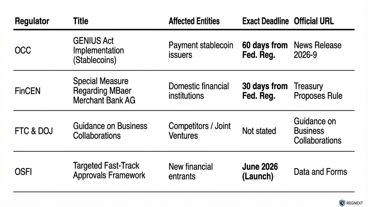 #USARegulation #CanadaRegulation #DigitalAssets #Stablecoins #AICompliance #Sanctions #FinancialRegulation #HorizonScanning #RegTech #RegNext