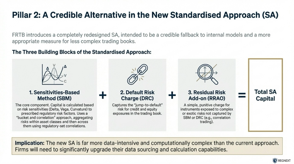 - Phase 2: January 1, 2028 (Internal Models Approach): The implementation of the FRTB Internal Models Approach (FRTB-IMA) has been proposed to be delayed by one year. In the interim (2027), firms will calculate Pillar 1 capital requirements using their existing (legacy) market risk models, while simultaneously reporting under the new Standardised Approach for the Output Floor.