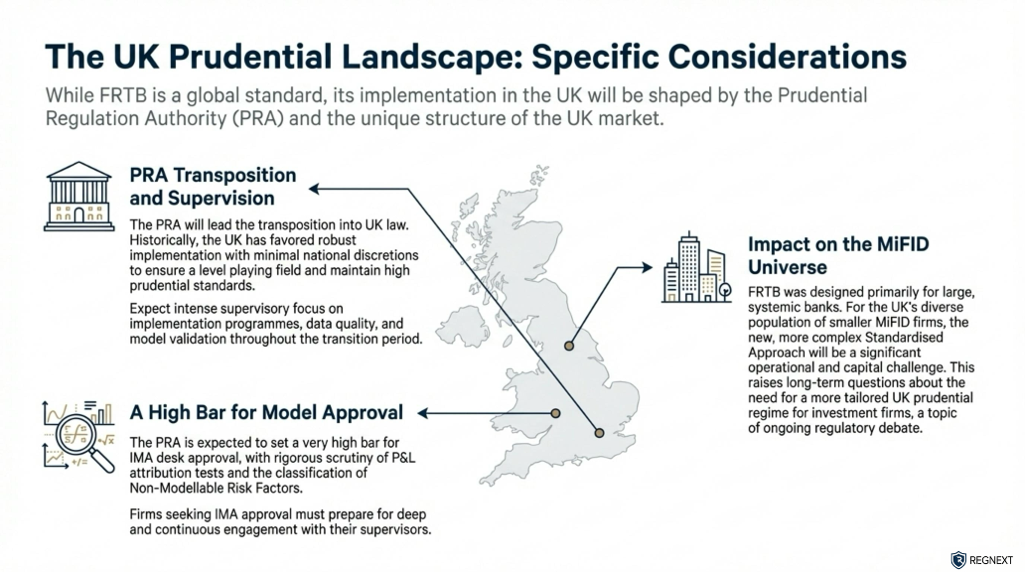 The UK’s strategy effectively elevates the Standardised Approach to a binding constraint from January 2027. Firms must prepare for parallel compliance: operating legacy models for capital setting in 2027 while finalizing the data-intensive FRTB-IMA infrastructure for the 2028 deadline.